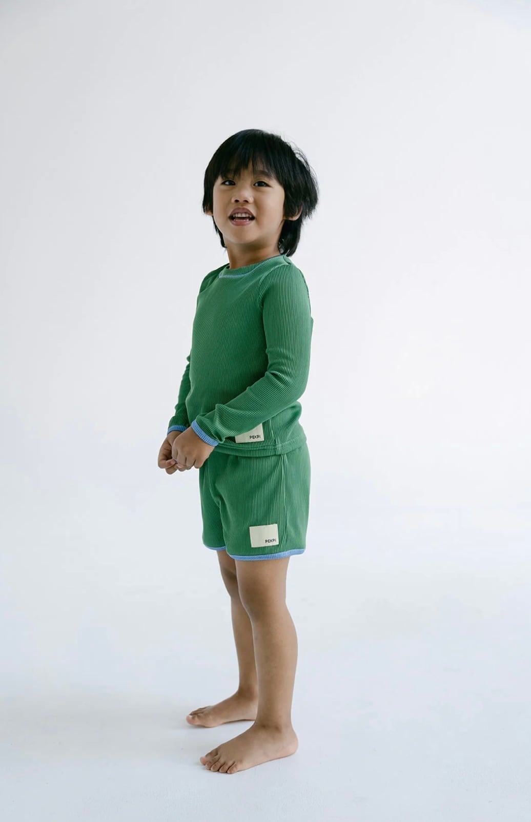 リブ編みの立体感ある生地は、動きやすく肌にも優しい着心地。