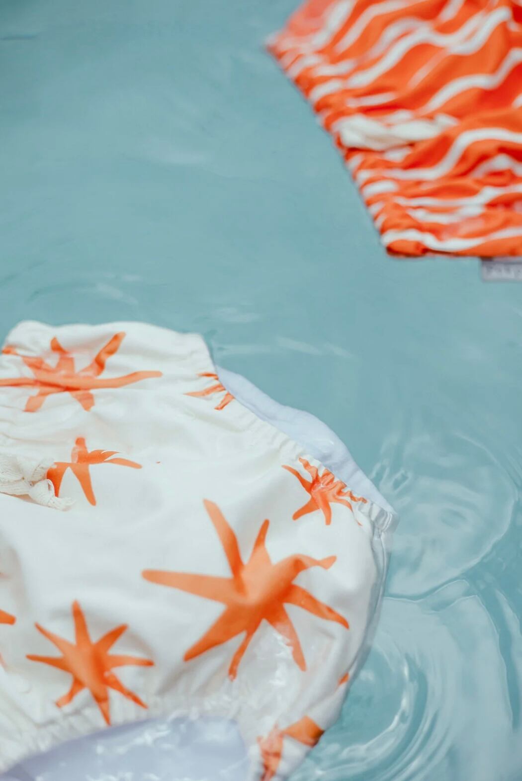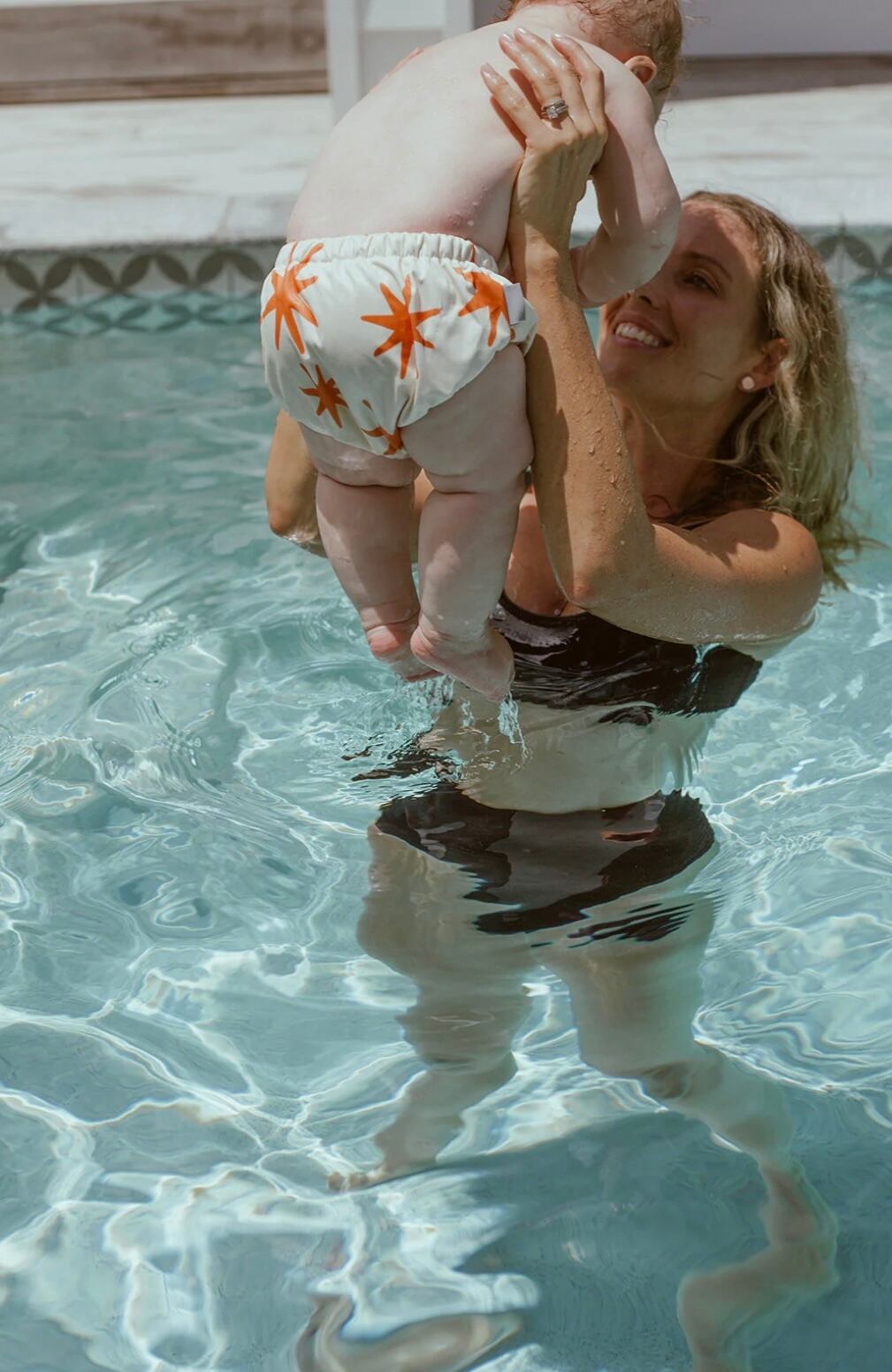 REPREVE® Our Ocean™ 素材を使用した、環境にやさしいリユーザブル(再利用可能)なおむつ型スイムウェアです。