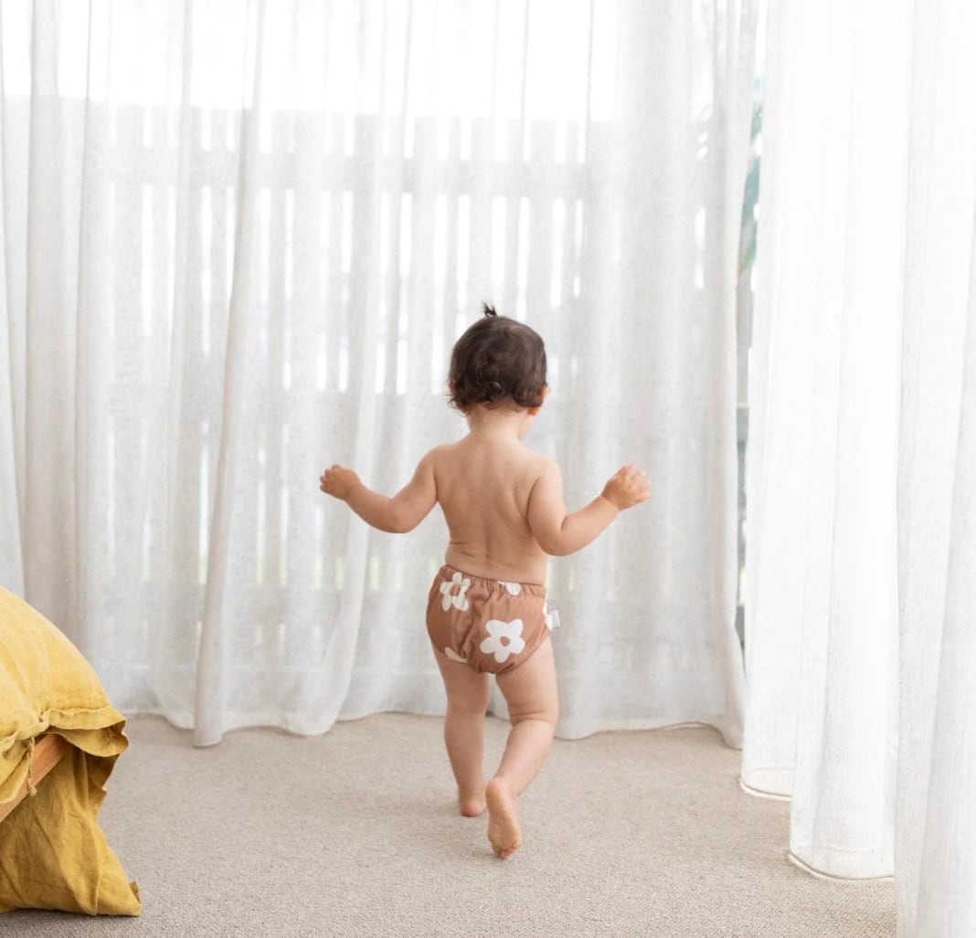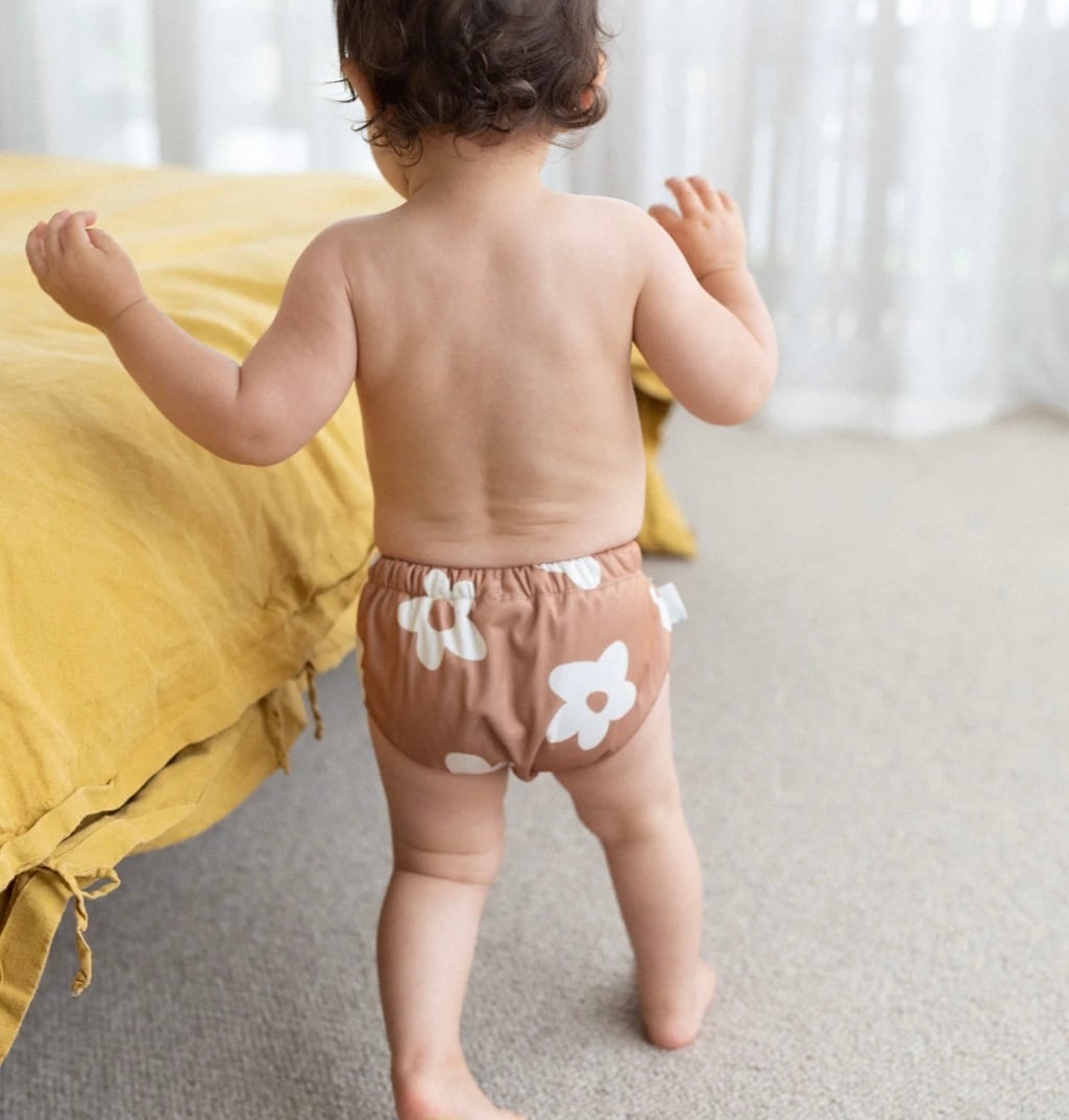 REPREVE® Our Ocean™ 素材を使用した、環境にやさしいリユーザブル(再利用可能)なおむつ型スイムウェアです。