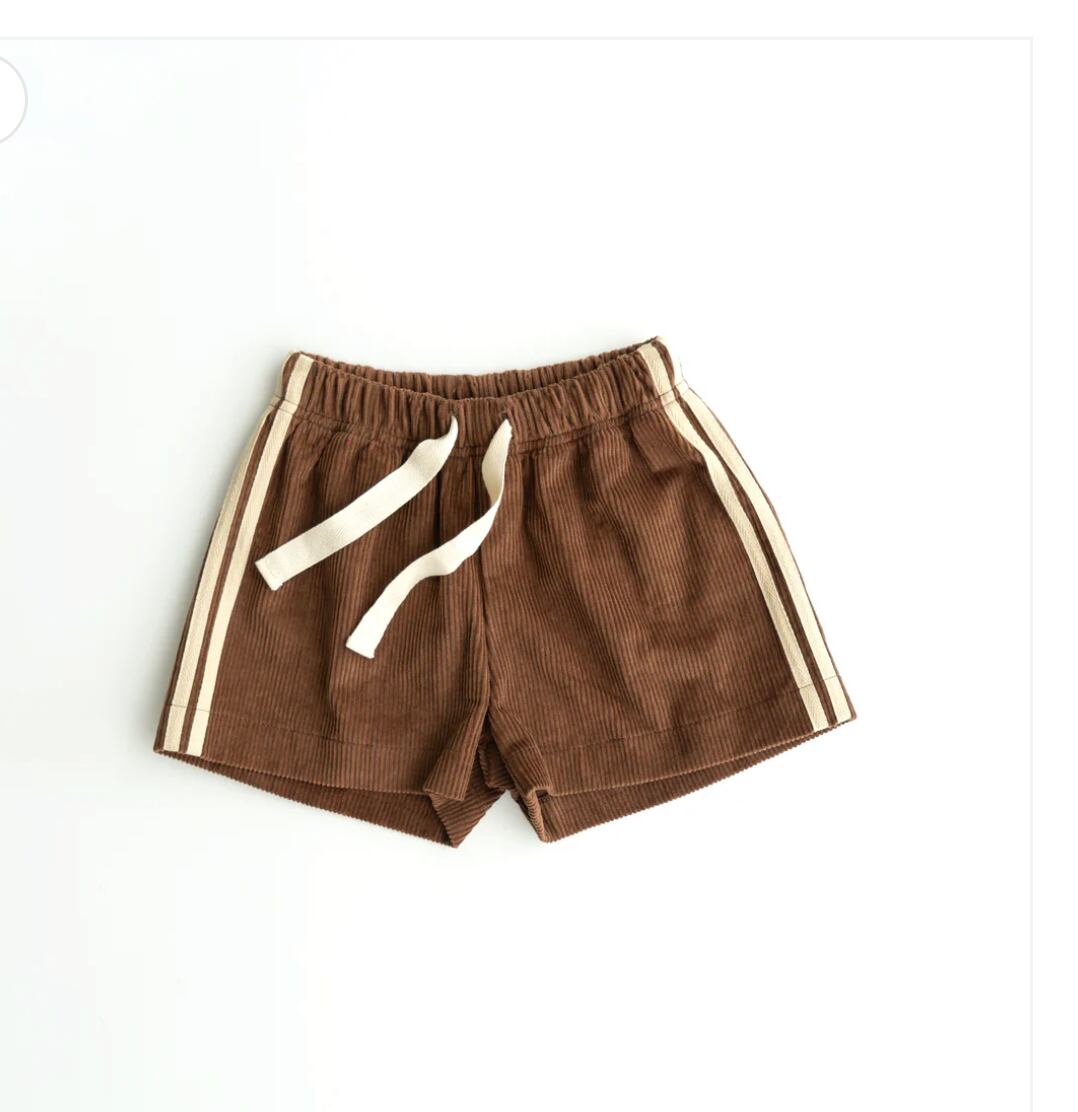 クラシカルなブラウンにサイドラインが映える、コーデュロイショートパンツ。