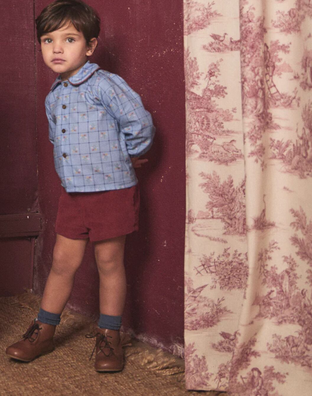 落ち着いたブルーチェックが可愛い、Birinit Petitの長袖シャツが登場です
