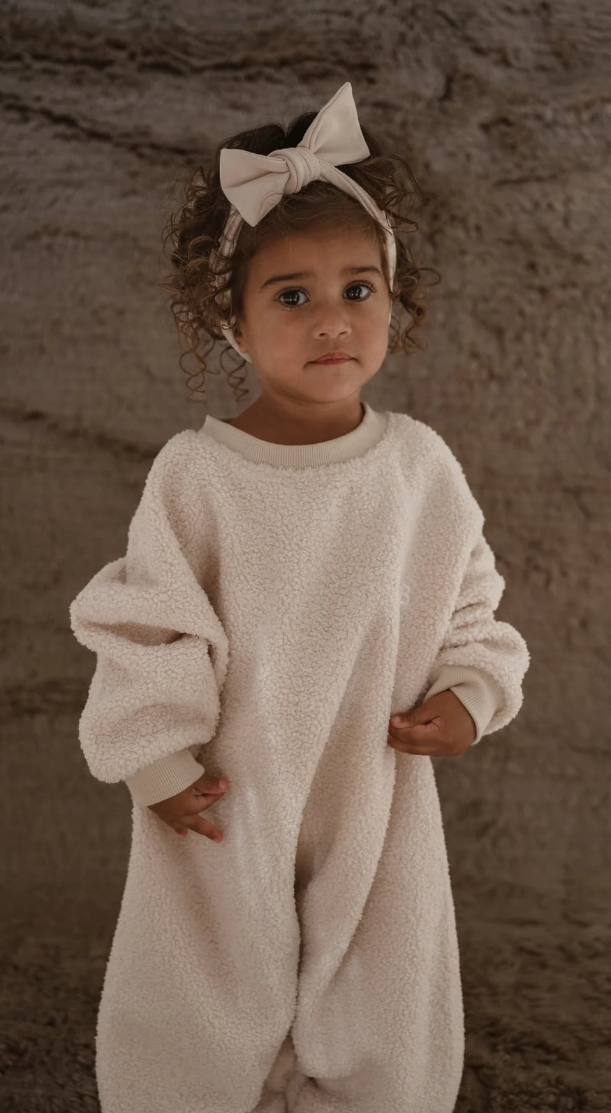 冬の寒さからお子さまを守り、暖かく過ごせるようデザインされたテディラウンジスーツ。