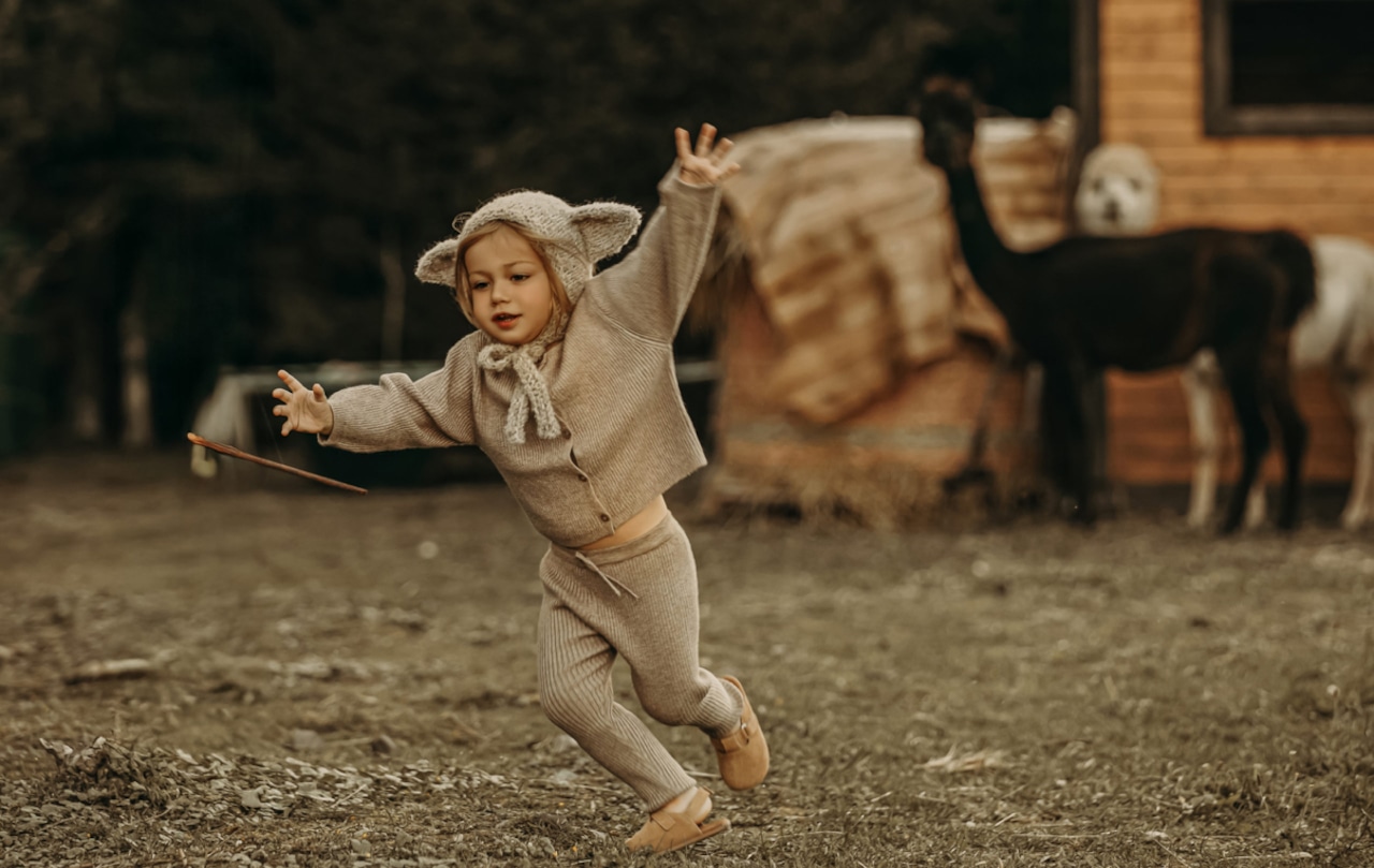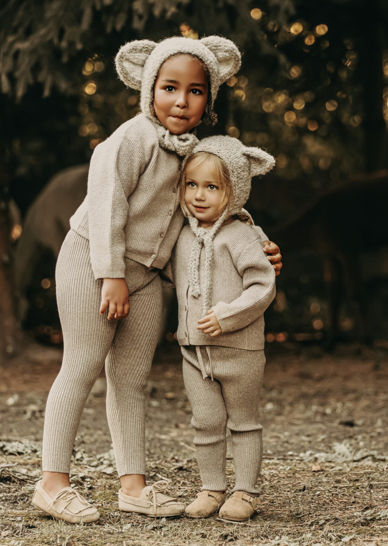 特別なアルパカ・ブークレ糸と繊細なメリノウールを組み合わせ、敏感なお子さまのお肌にも優しい仕上がりです。