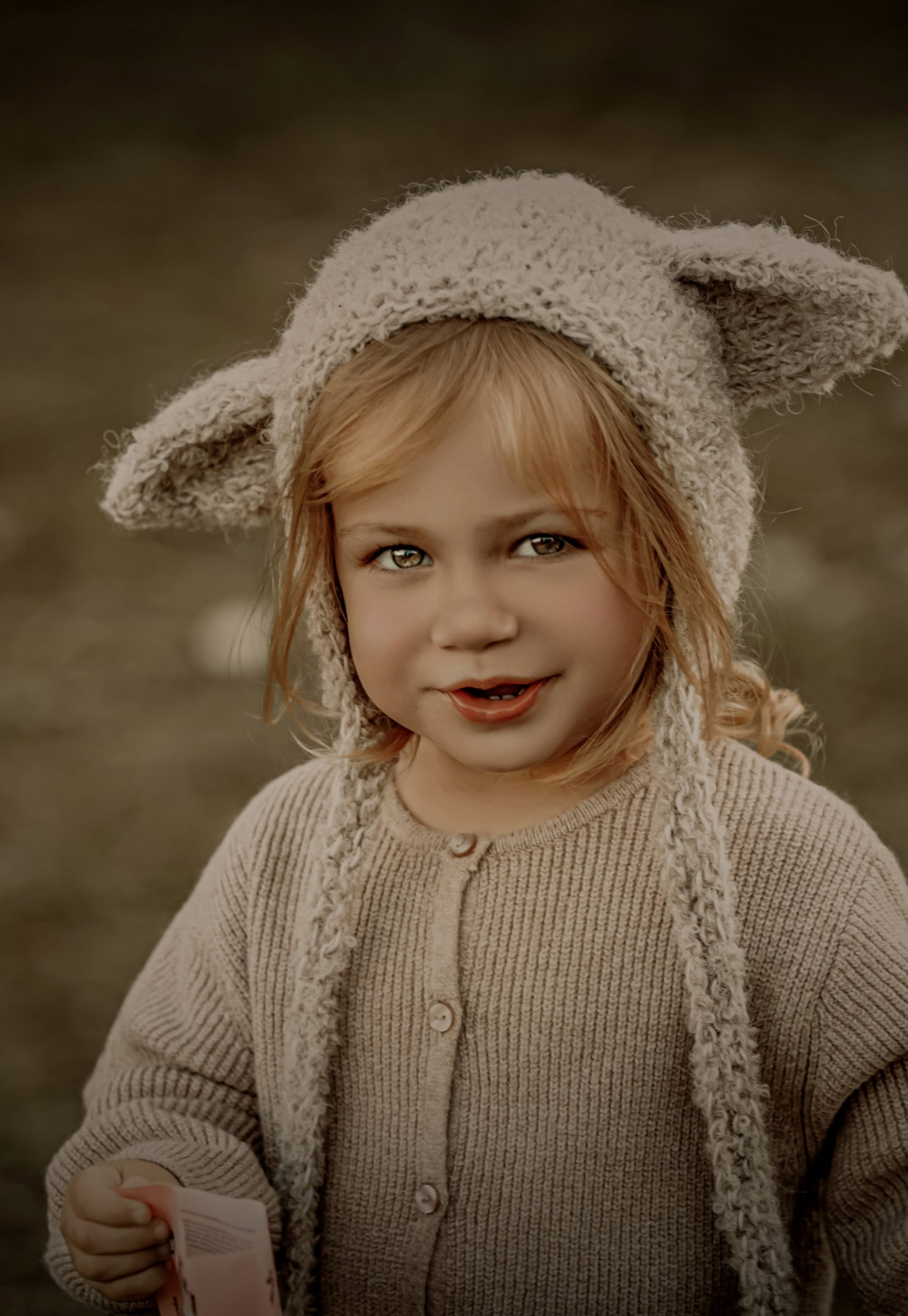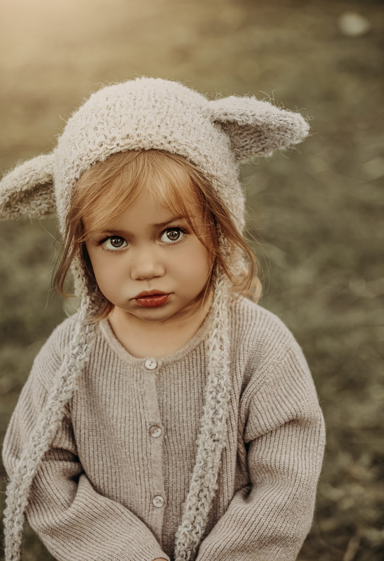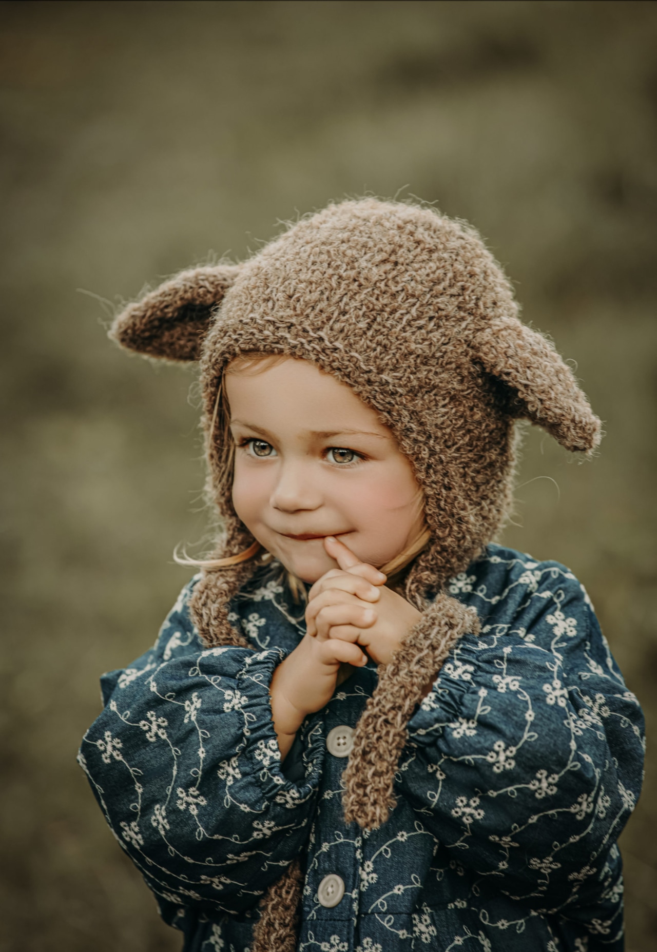 ふわふわの子羊シルエットが愛らしい、ポーランド製ハンドメイドのベビー帽子。