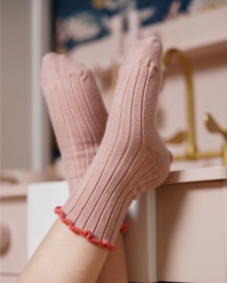 【予約商品】【全品送料無料】Collégien - Delphine - Lettuce Trim Ribbed Socks
