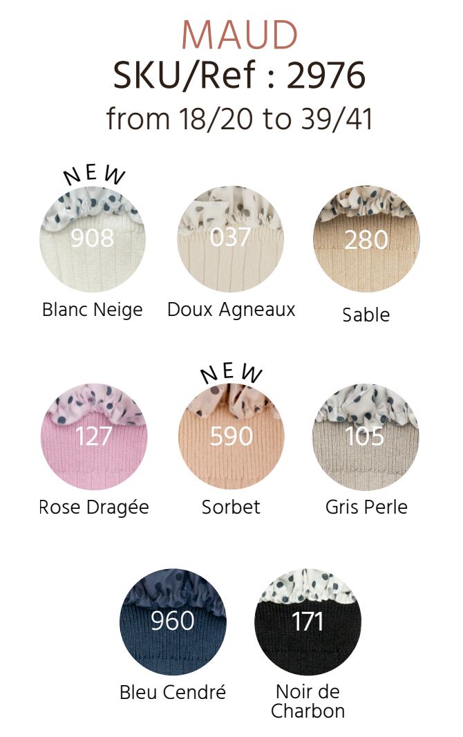クラシックなリブ編みに、可憐なディテールを添えたデザインが印象的な一足です。