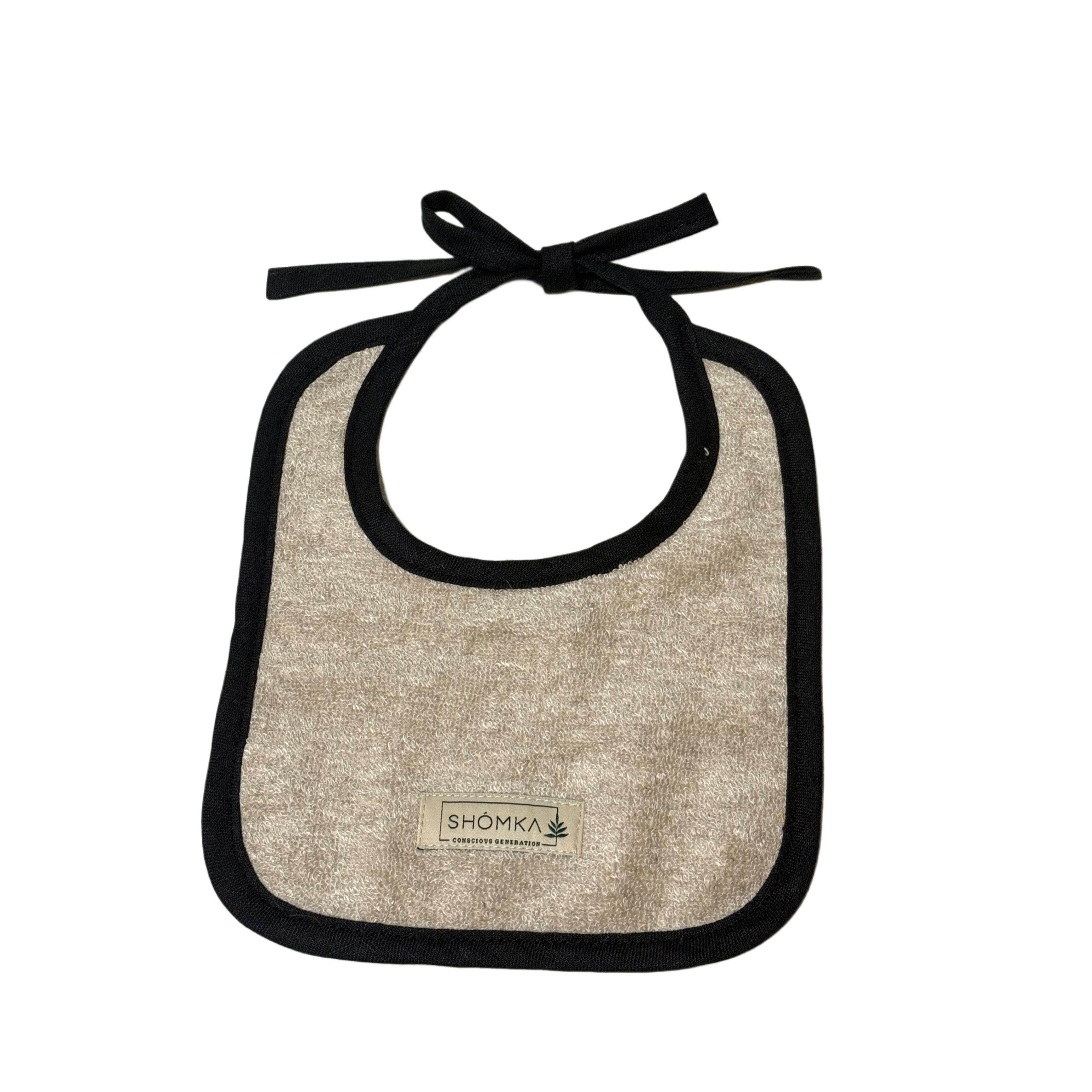※ビブ本体は無地のグレー、リネン生地のフリル付タイプとなります