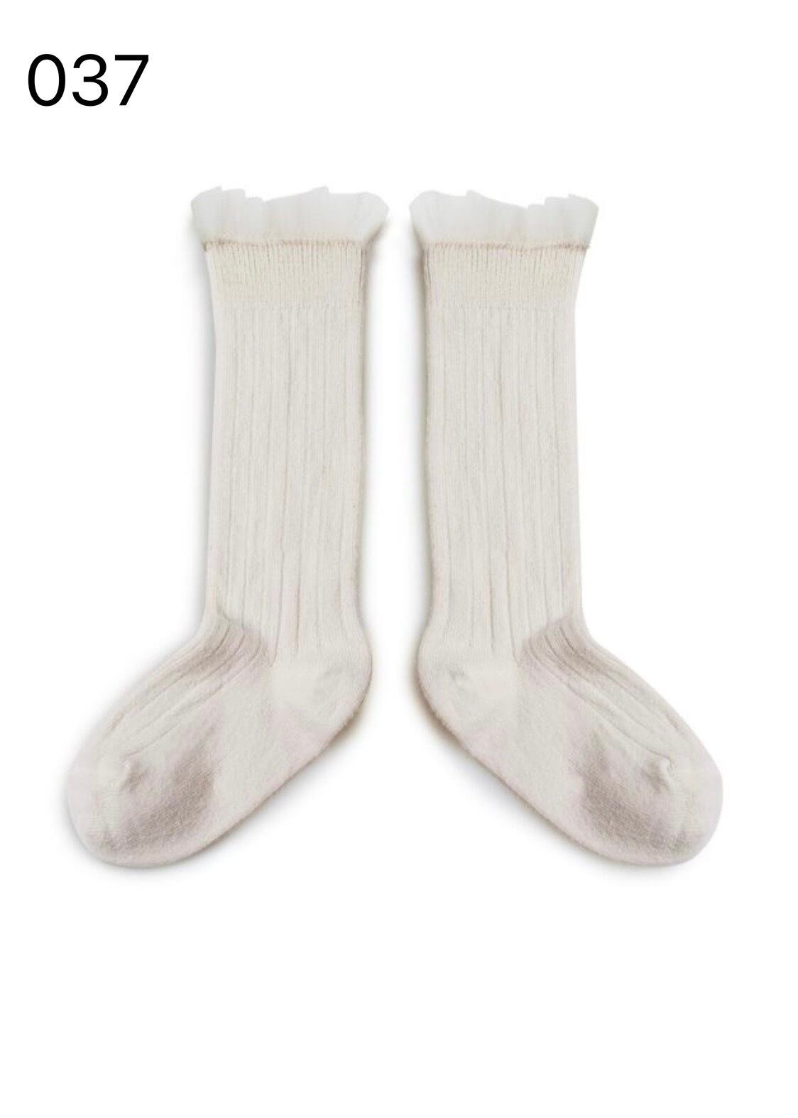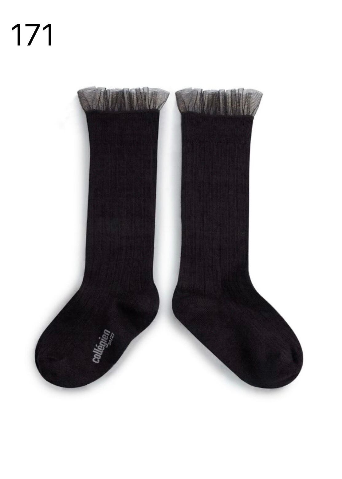 Collégien - Manon - Tulle Frill Ribbed Knee-high Socks