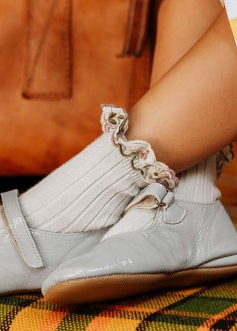 季節を問わず活躍し、動きやすさと暖かさを両立。お子さまの足元をエレガントに彩ります。