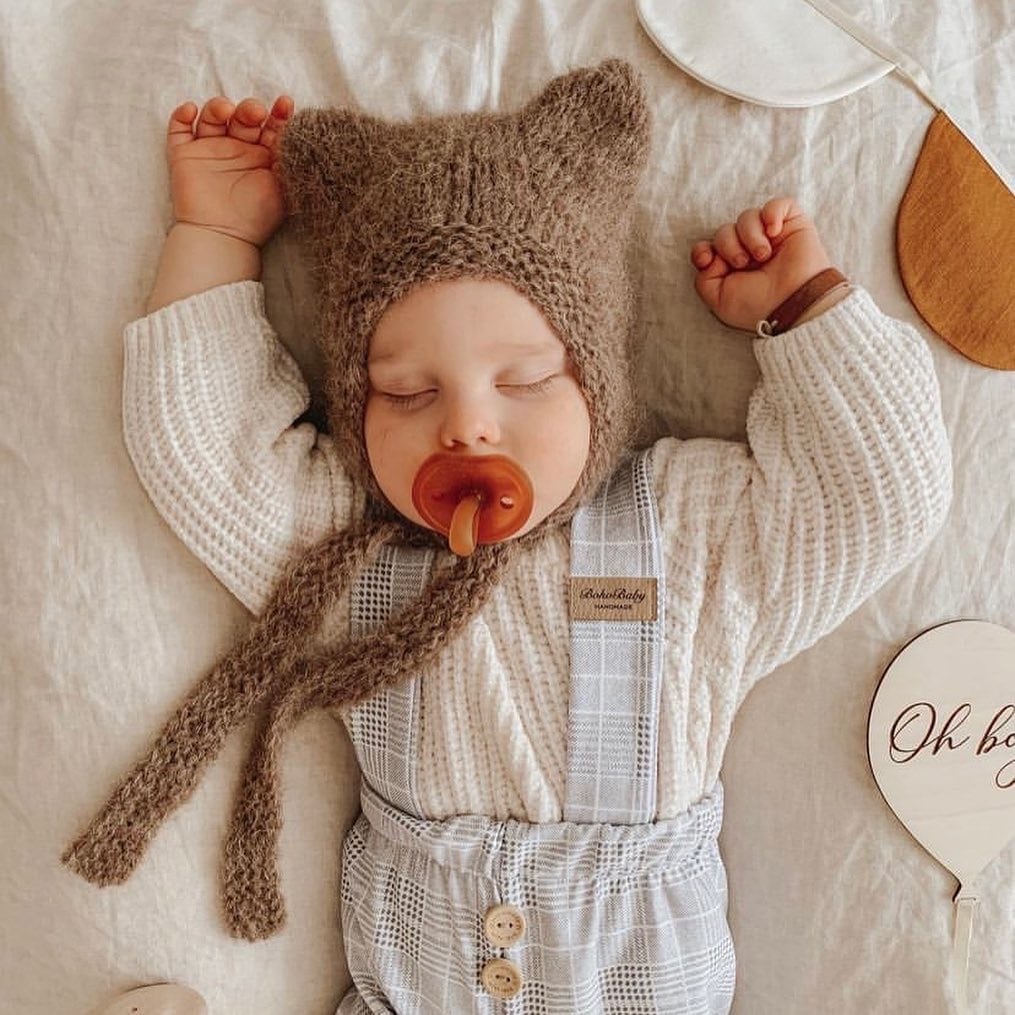 とても柔らかく、驚くほど繊細な「ふわふわ」とした起毛コットンで作られた、ベアデザインの帽子です。