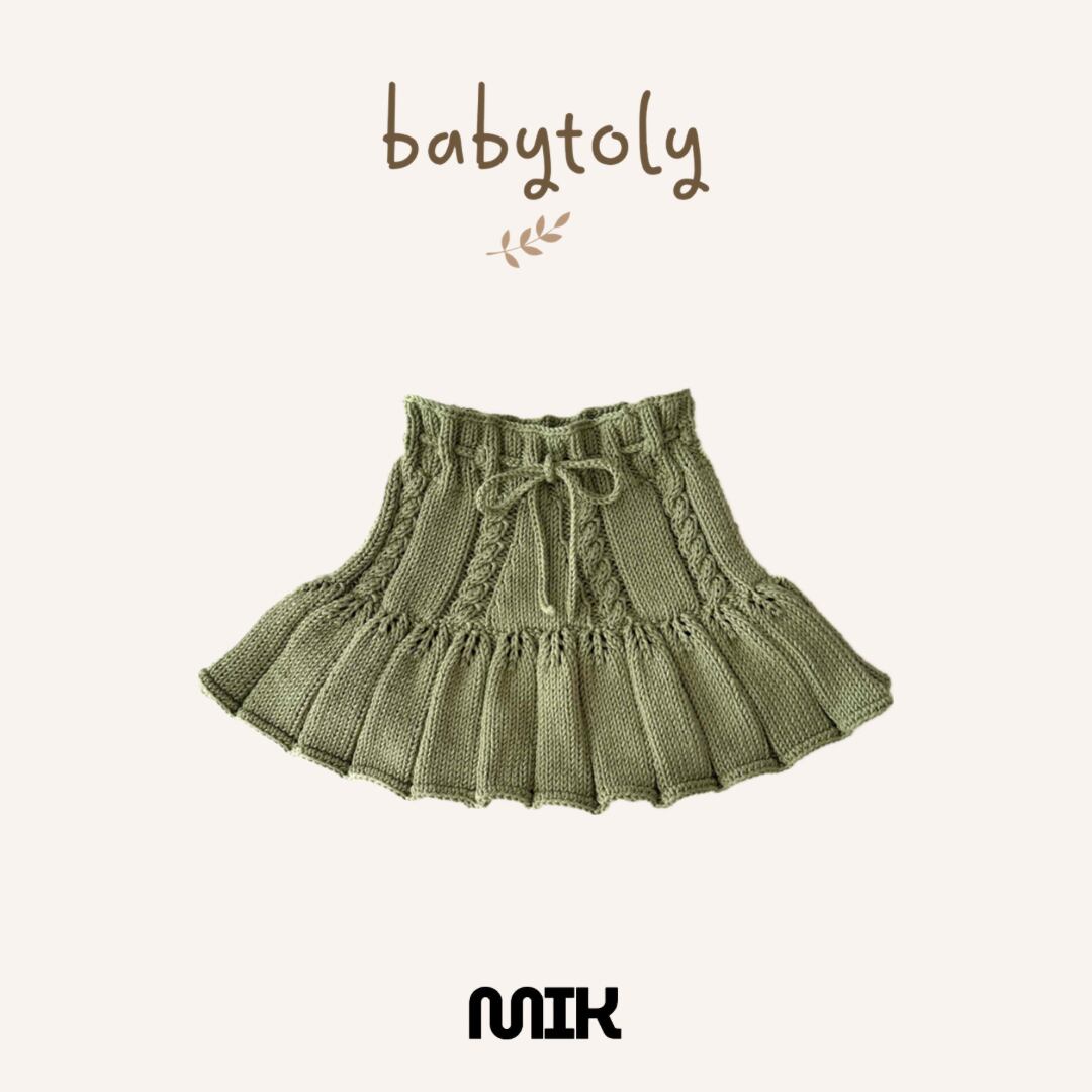 前後に繊細なケーブル編みを施した Ivy Skirt です。
