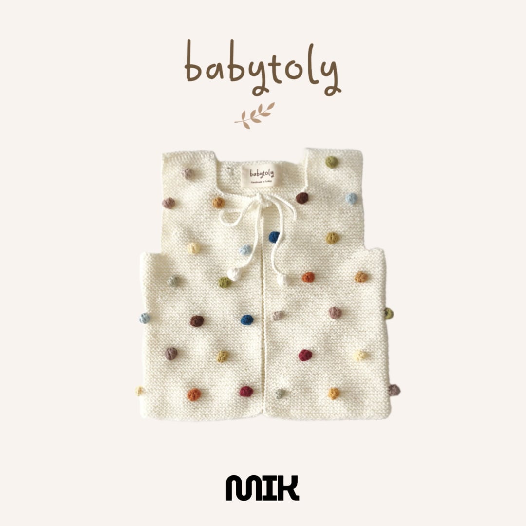 GOTS認証100%オーガニックコットンを使用した、Babytolyのハンドメイドニットアイテム。
