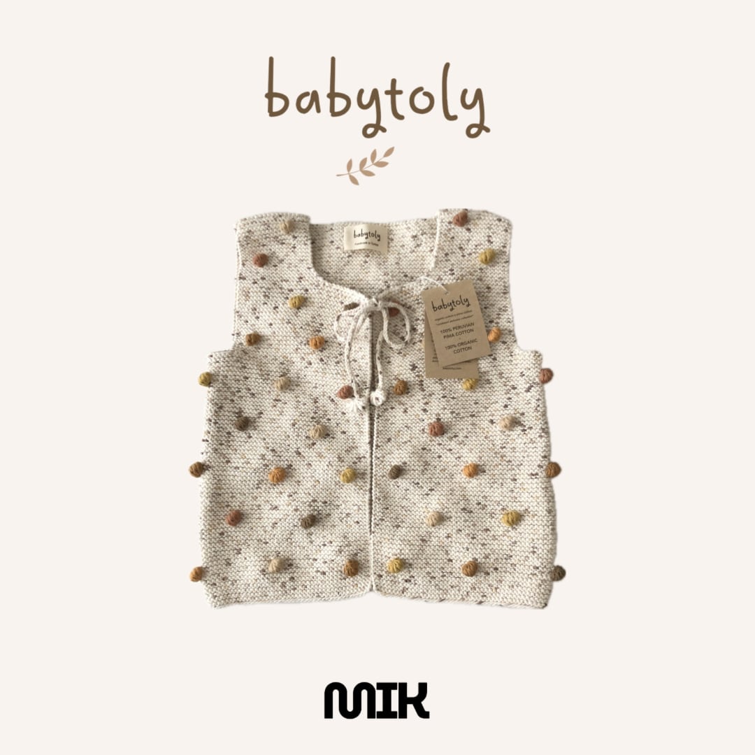 GOTS認証100%オーガニックコットンを使用した、Babytolyのハンドメイドニットアイテム。