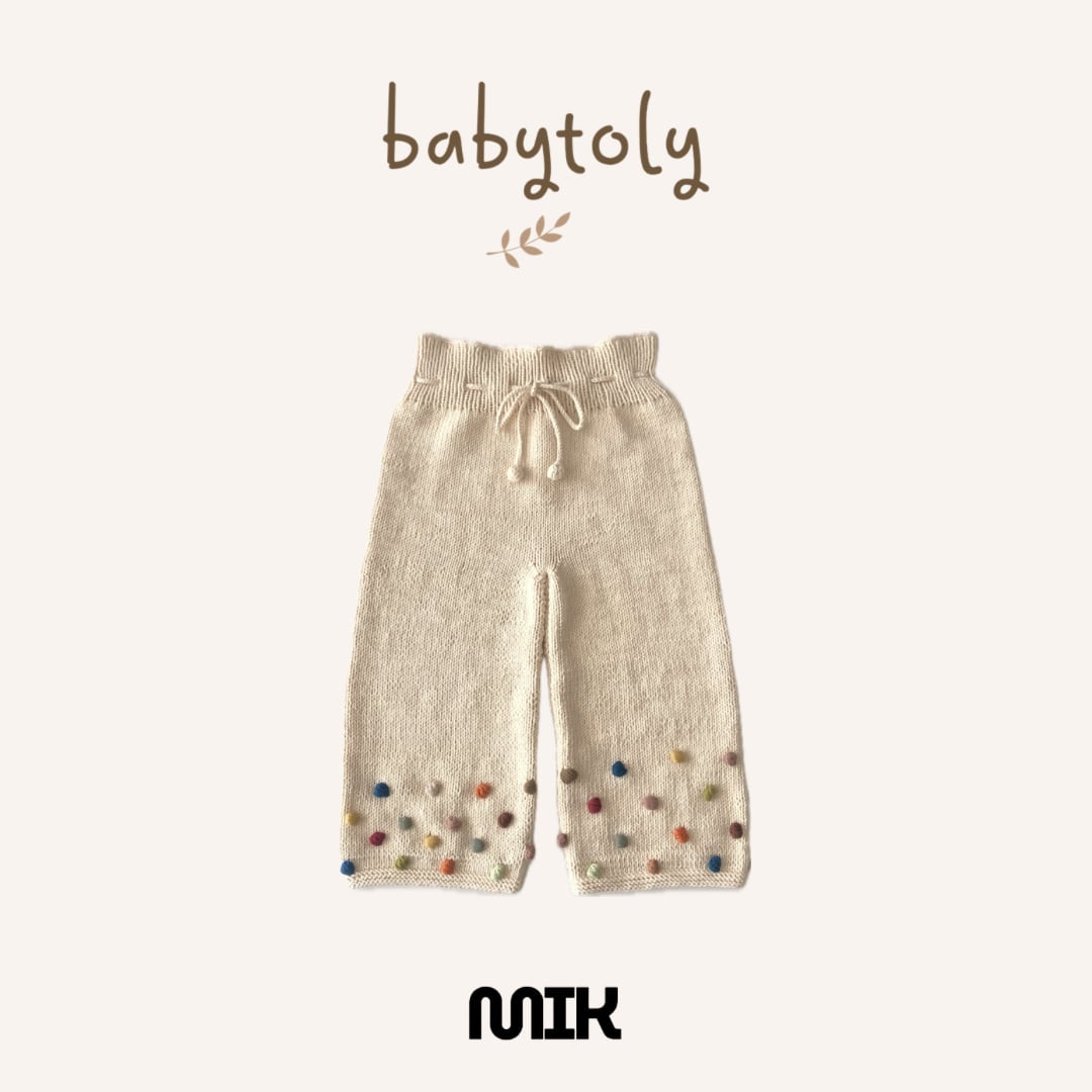 ナチュラルな風合いに、さりげない遊び心を添えたBabytolyのニットパンツ。