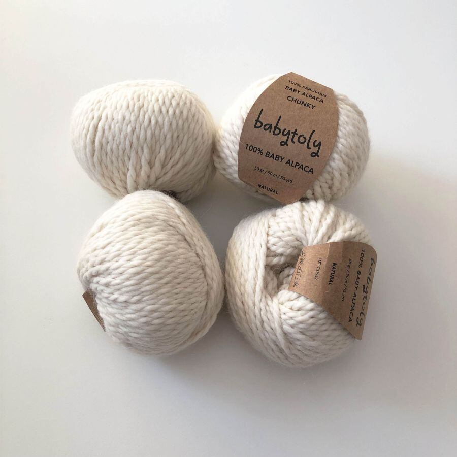 100%ベビーアルパカのチャンキーヤーンを使用した、Babytolyのハンドメイドニットアイテム。