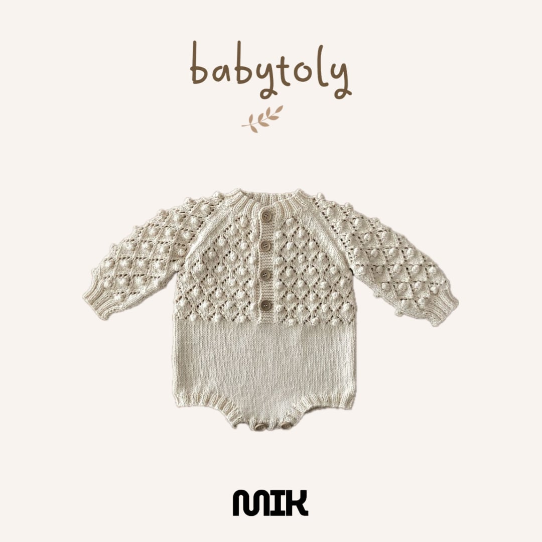 GOTS認証を取得した100%オーガニックコットンを使用し、ひとつひとつ丁寧に手編みされたベビーロンパースです。