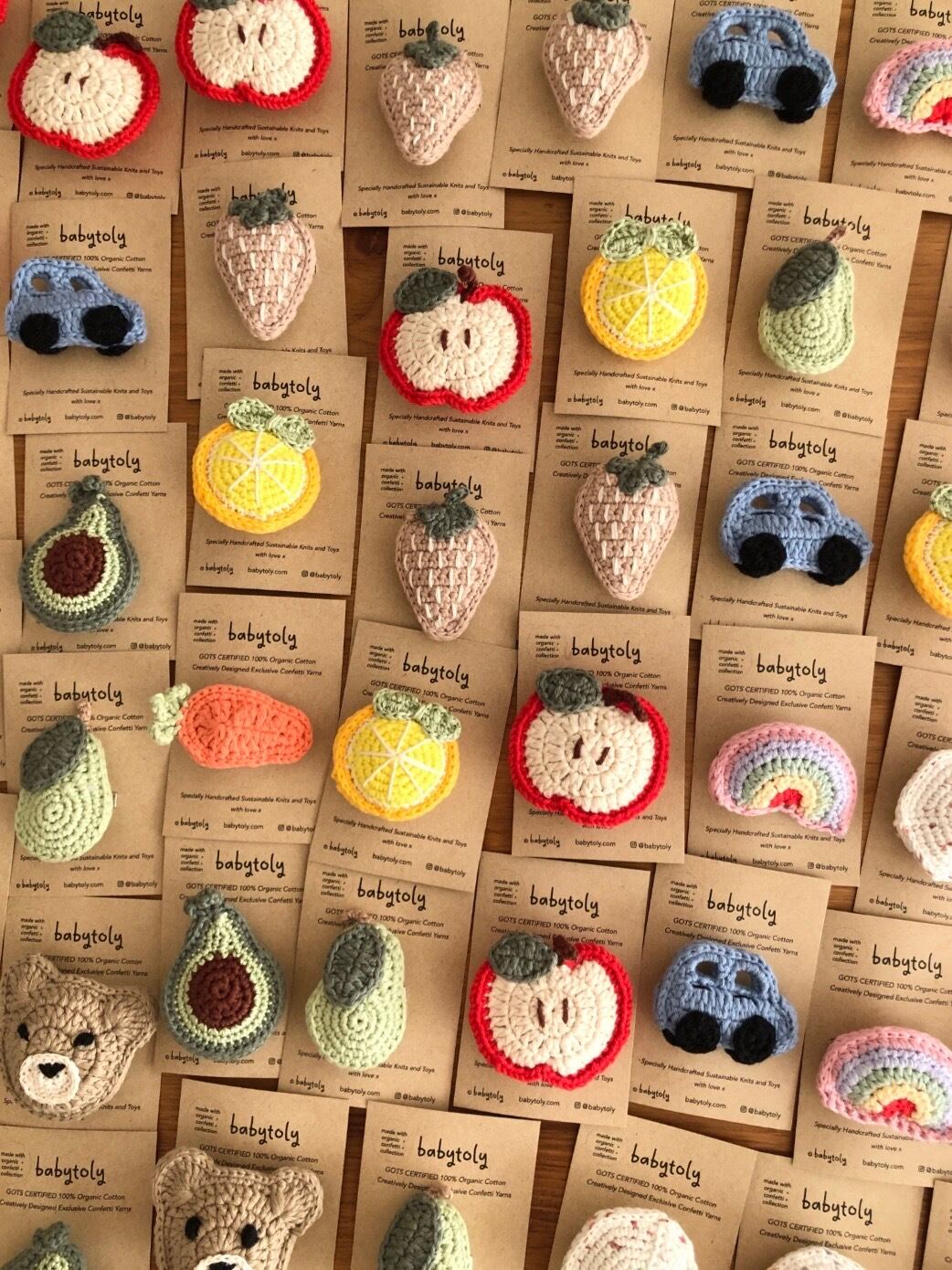 BABYTOLYの人気モチーフ、フルーツデザインのハンドメイドクリップ。