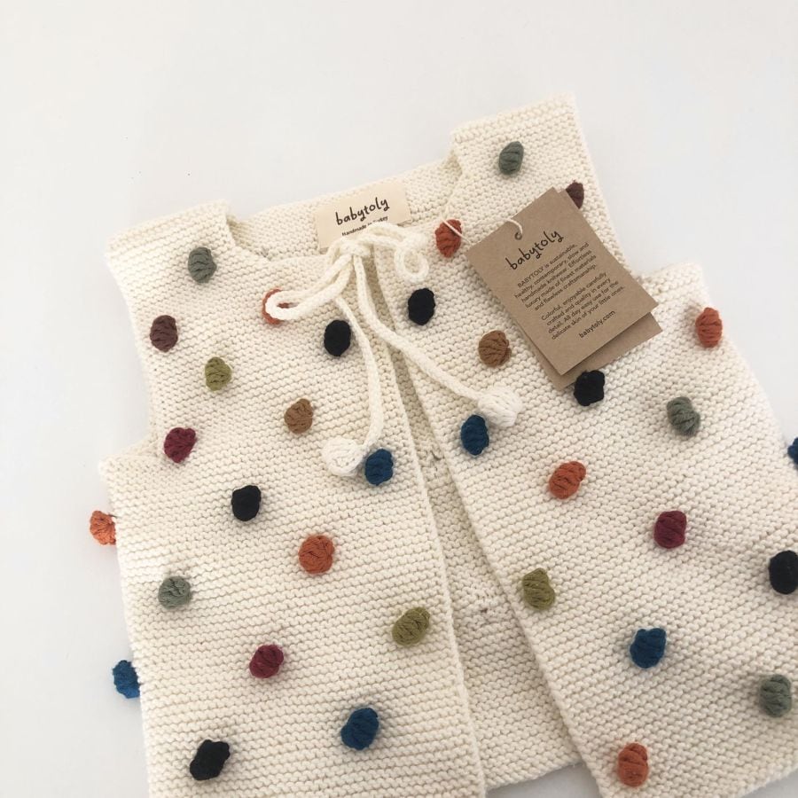GOTS認証100%オーガニックコットンを使用した、Babytolyのハンドメイドニットアイテム。