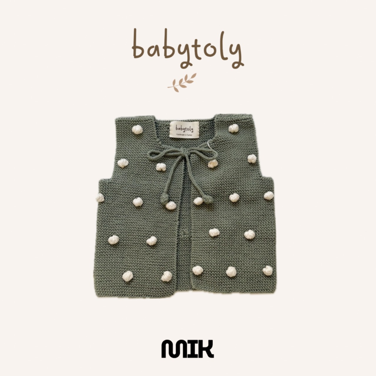 GOTS認証100%オーガニックコットンを使用した、Babytolyのハンドメイドニットアイテム。