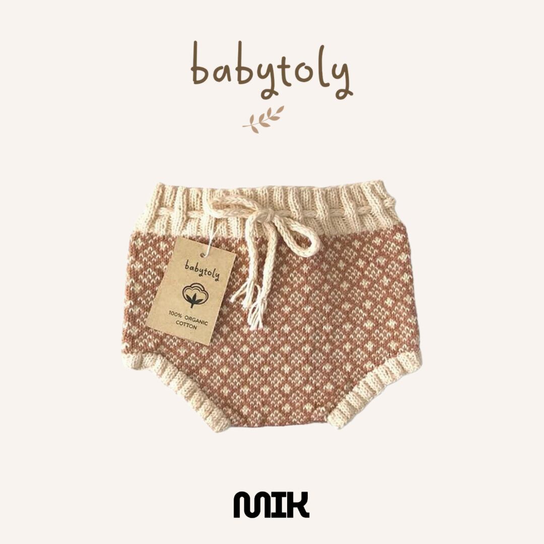GOTS認証100%オーガニックコットンを使用した、Babytolyのハンドメイドニットブルマ。