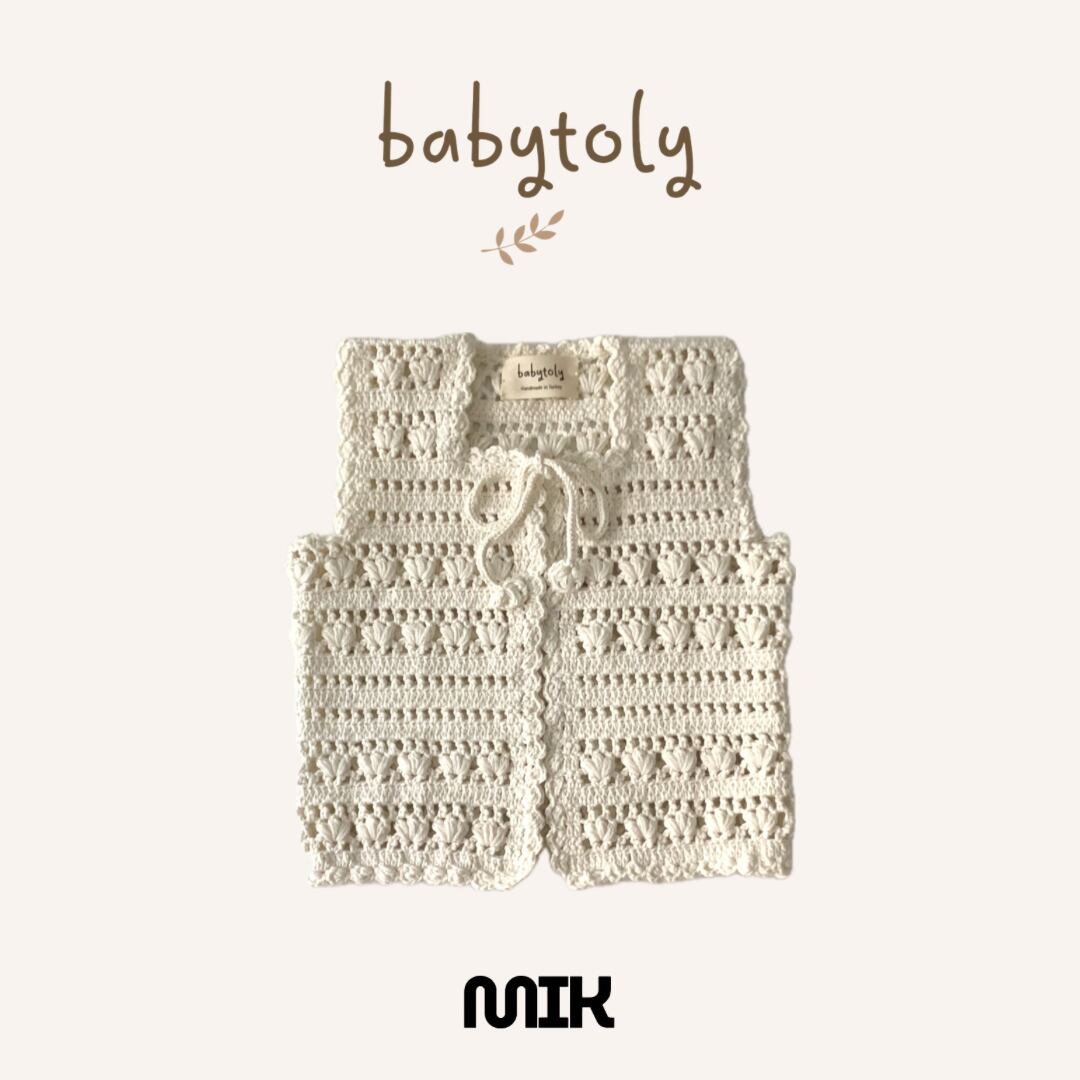 繊細なクロシェ編みが美しい、Babytolyのニットベスト。