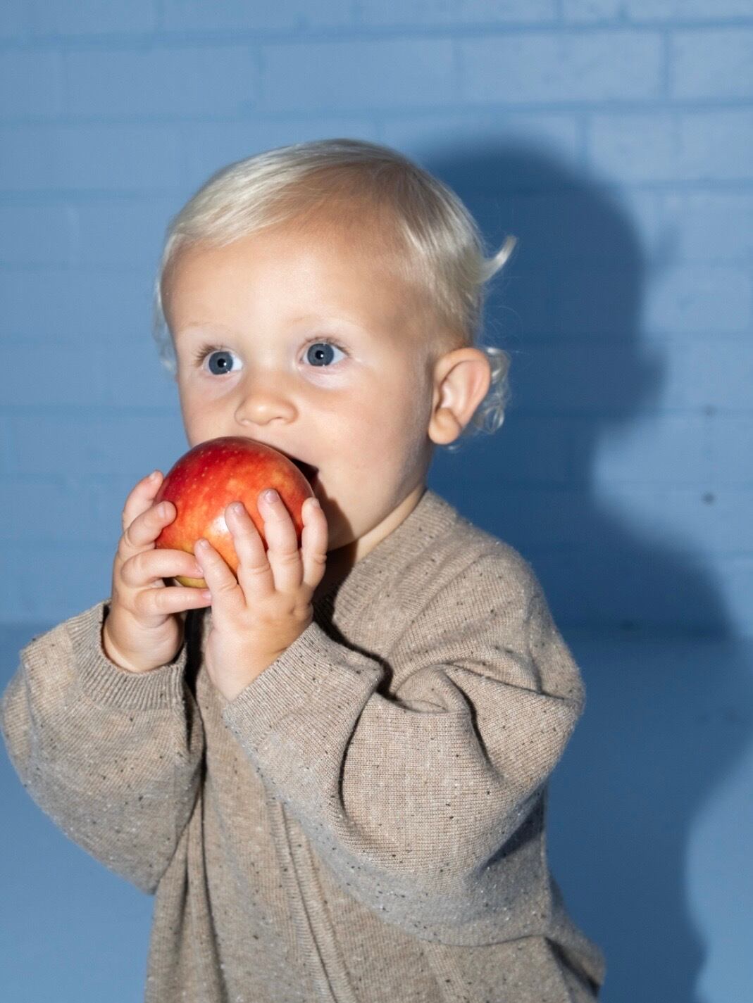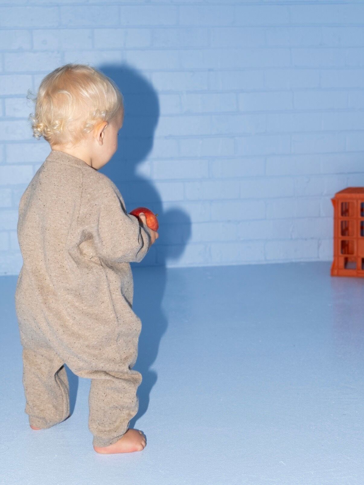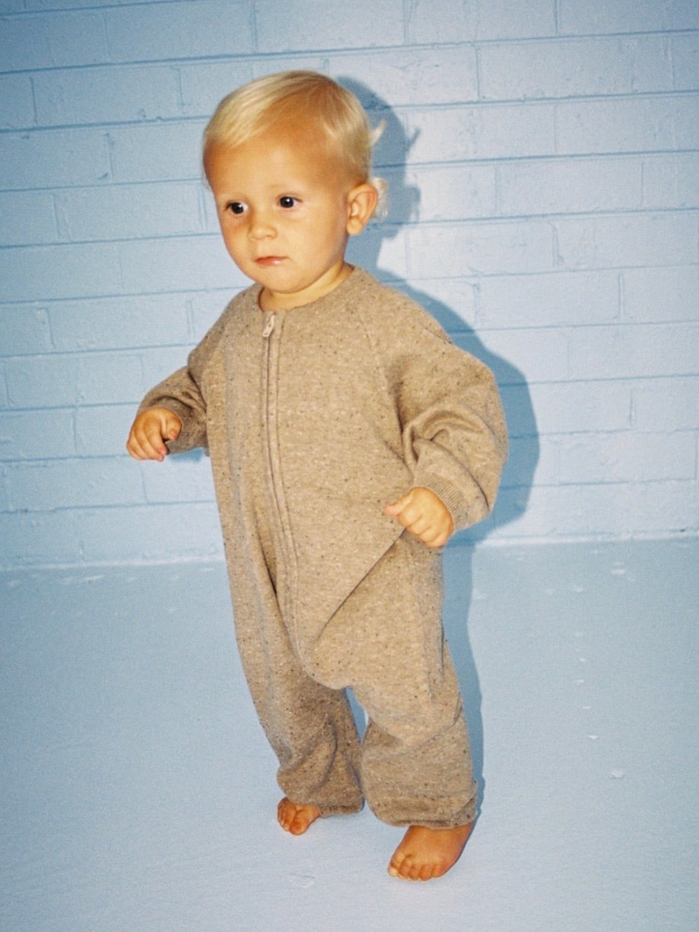 【全品送料無料】GROWN / Organic Speckle Knit Zipper Starsuit - Oat