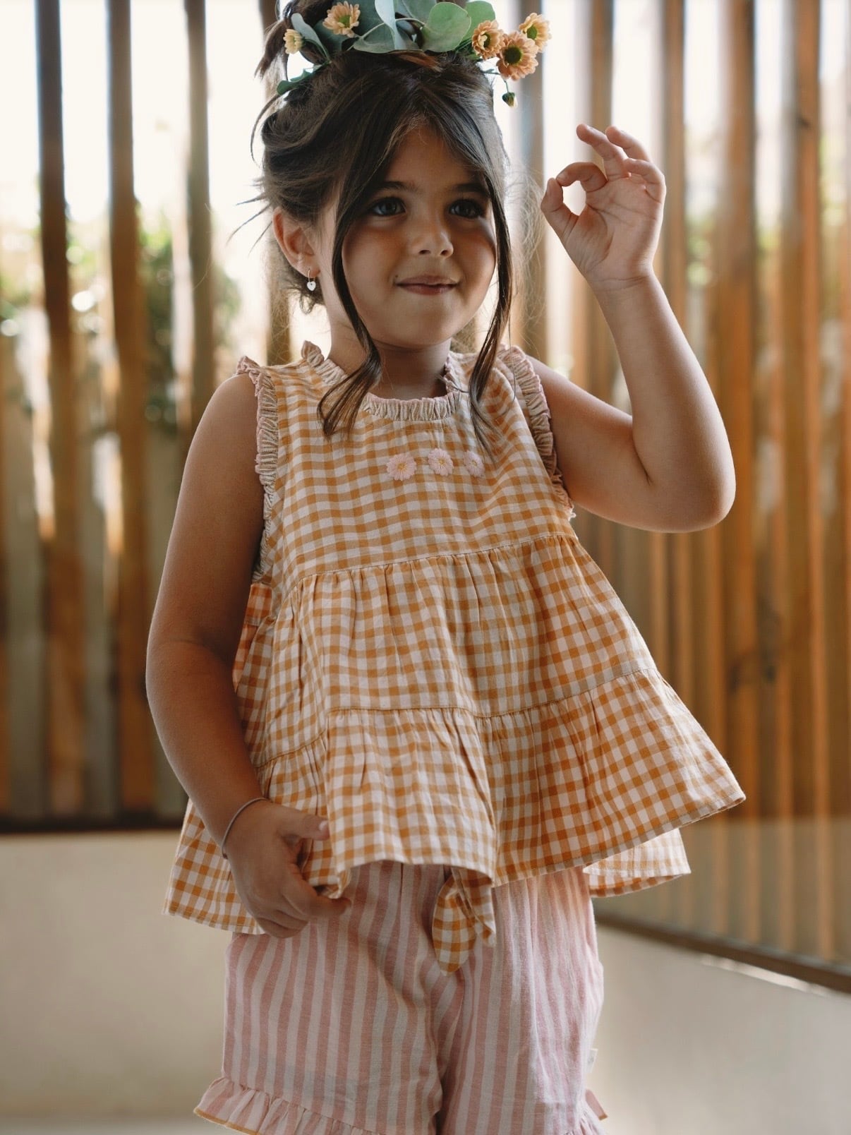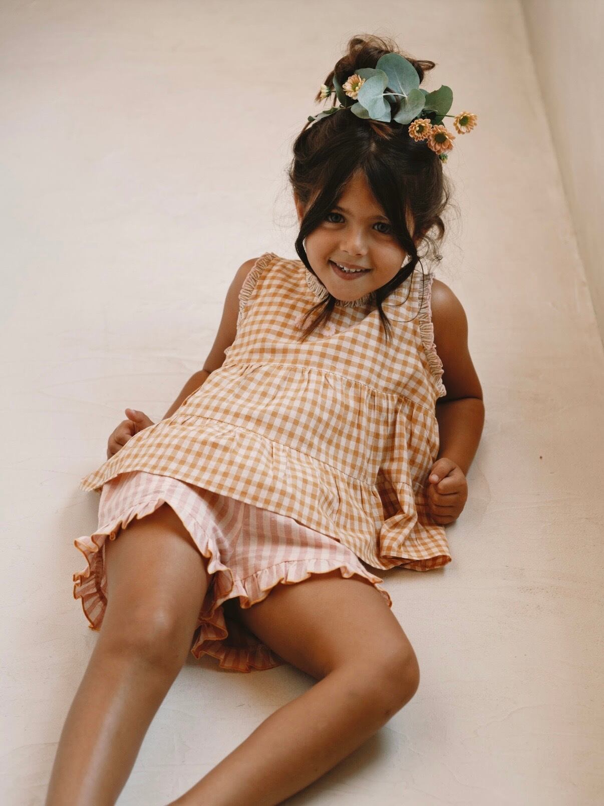 伸縮性のあるウエストで動きやすく、愛らしいギンガムリボンが控えめながらも洗練されたアクセントに。