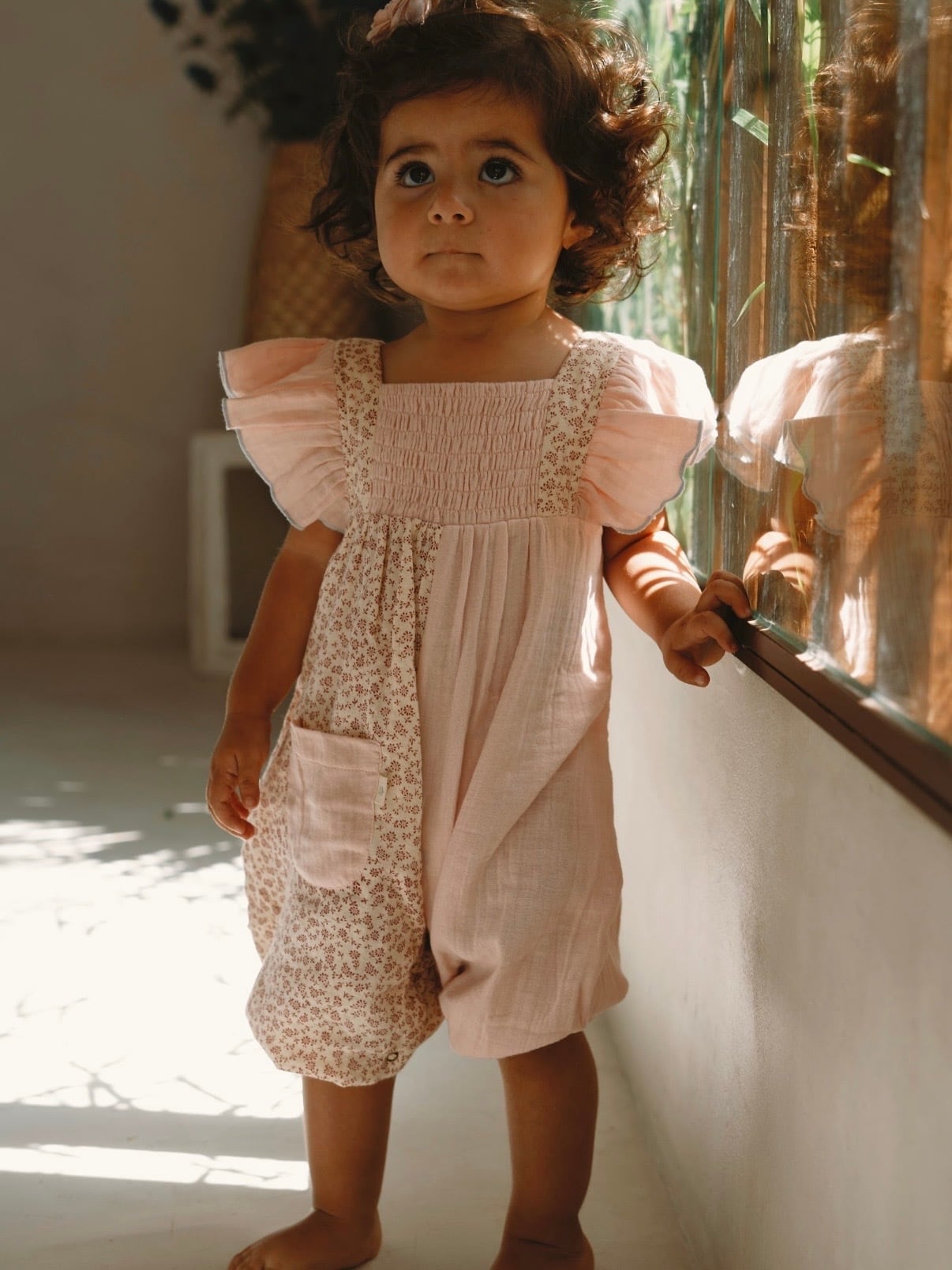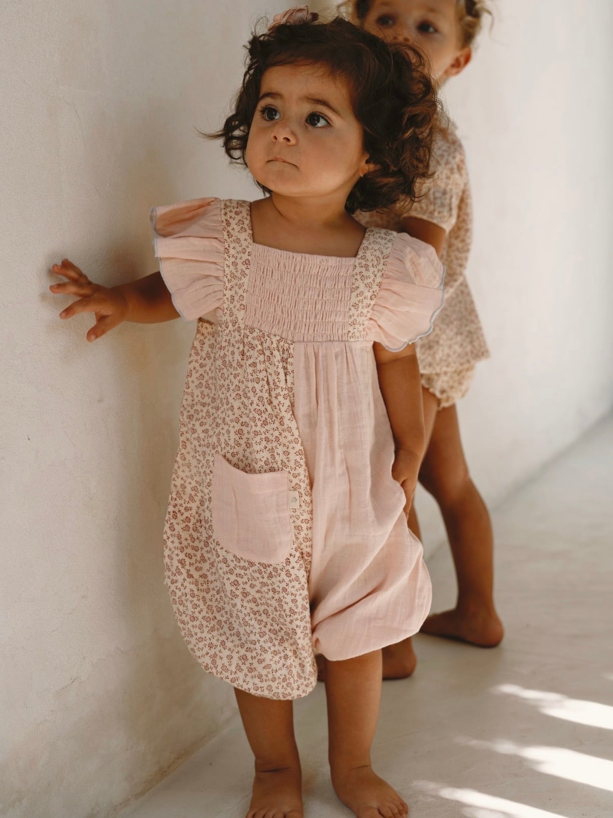 実用性とデザイン性を兼ね備えた、女の子のためのショートジャンプスーツ。