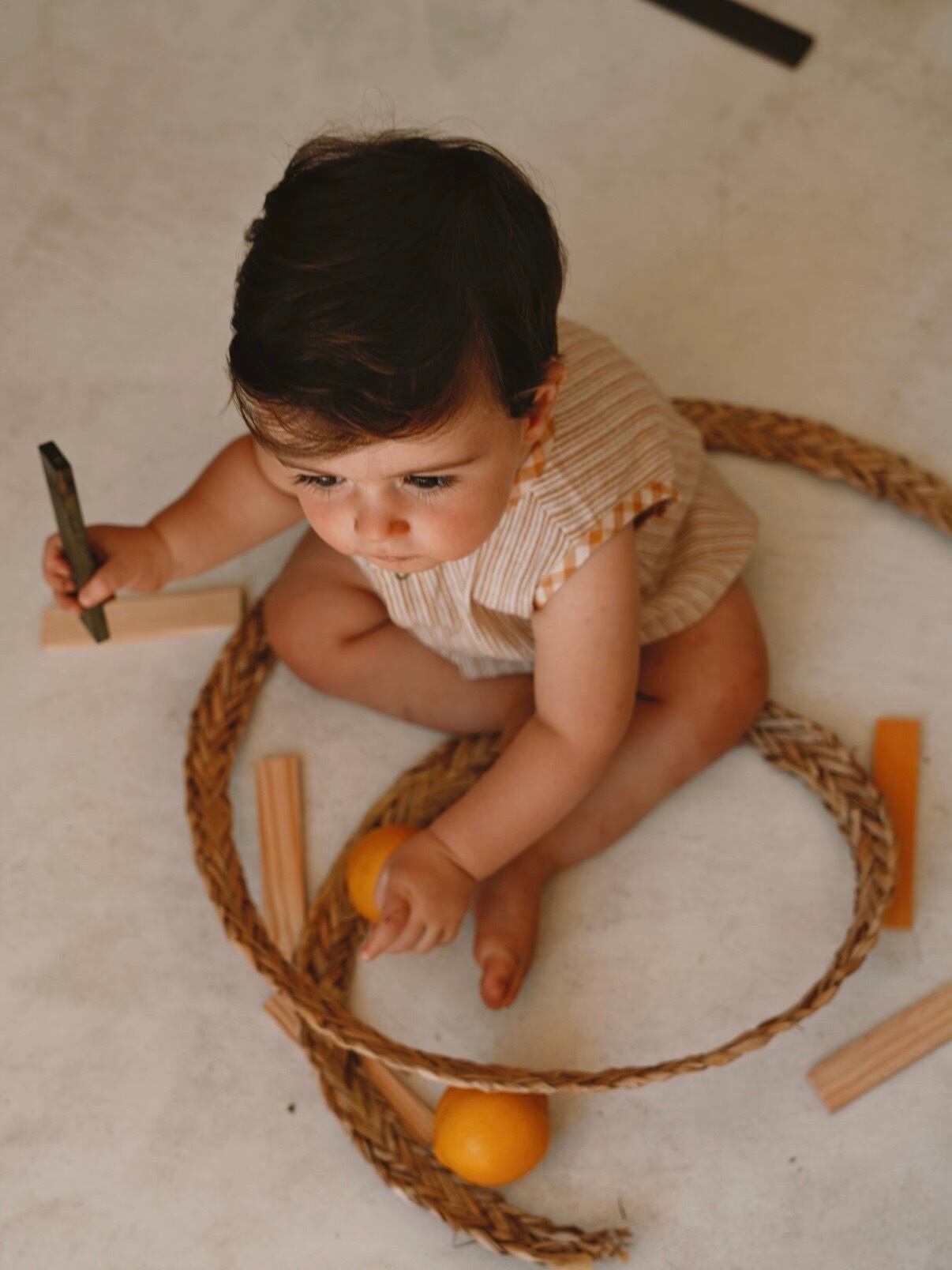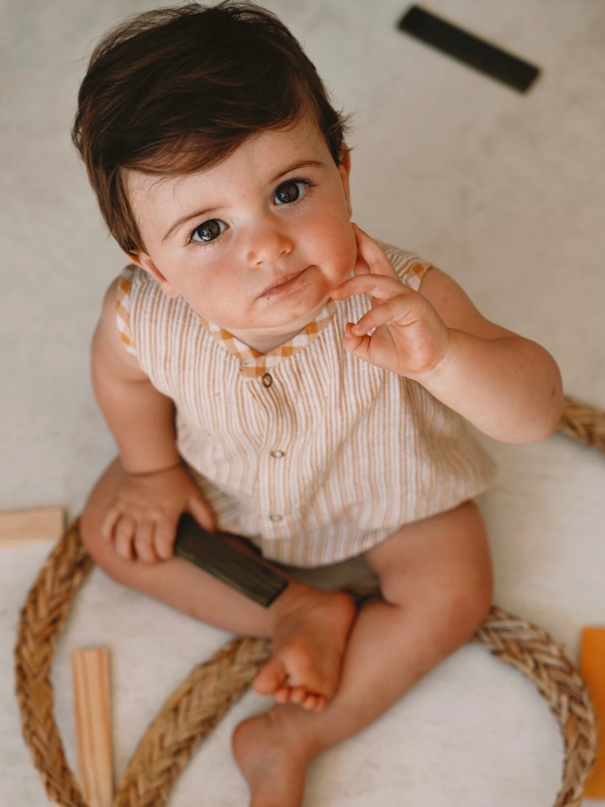 実用性とタイムレスな魅力を備えた、ベビーのためのコンビネゾン。