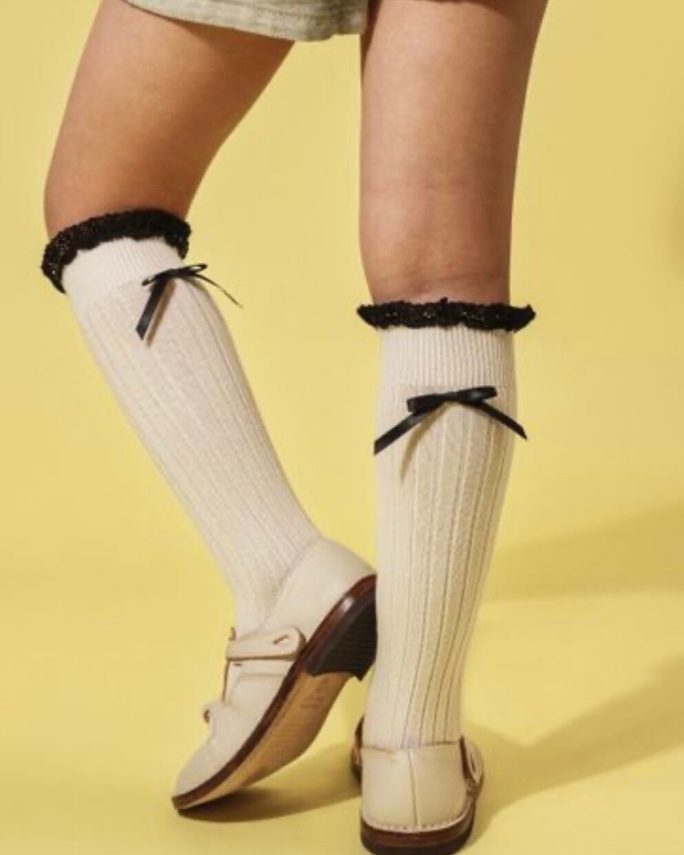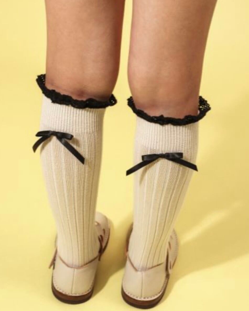 【予約商品】【全品送料無料】Collégien - Domitille - Ribbed Knee-high Socks with Lace and Bow