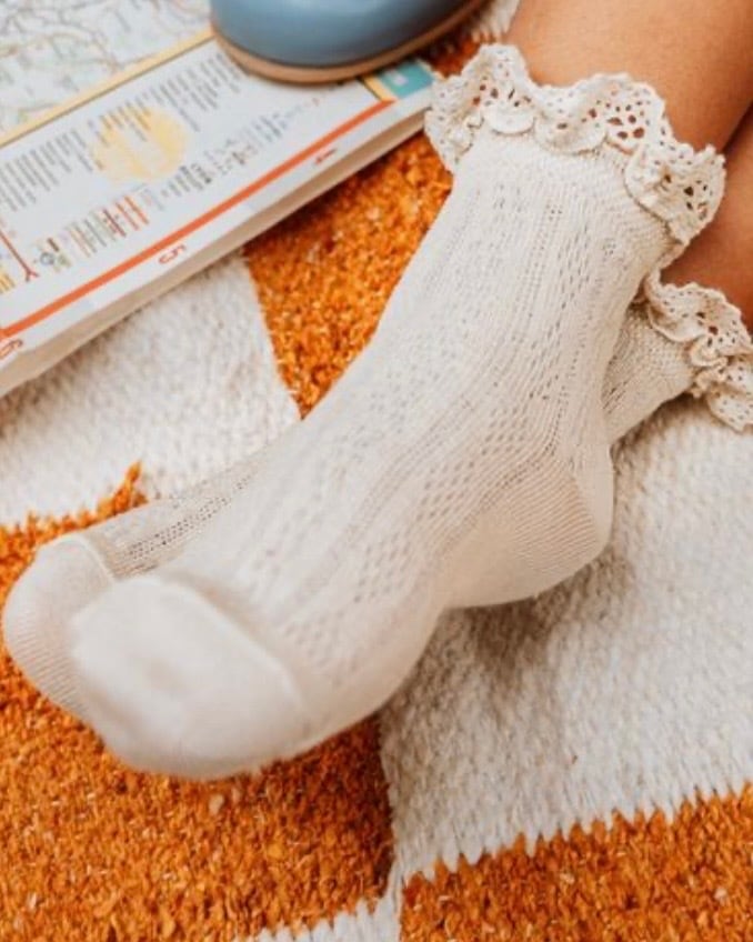 【予約商品】【全品送料無料】Collégien - Annette - Lightweight Pointelle Socks with Lace Frill