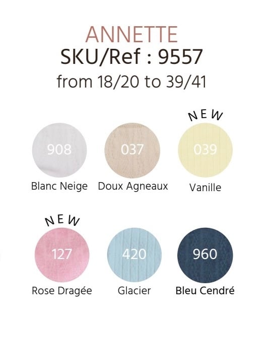 Annetteは、**Fil d’Ecosse(高品質エジプト綿糸)**を使用した、レース付きショートソックスです。