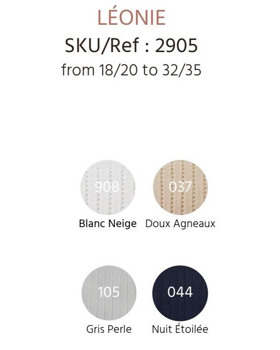 Léonieは、**Fil d’Ecosse(高品質エジプト綿糸)**を使用した、クロシェ編みのハイソックスです。